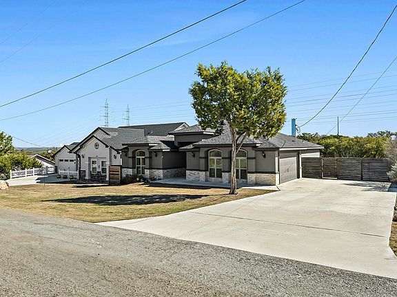 Here is your chance to live the lake life without paying the lake price! This stunning home features 4 bedrooms and 2 1/2 bathrooms thoughtfully laid out in the 1863 sq ft. floor plan. Built in 2020 by Infiniti Homes, this custom home features a double door entrance with a crystal chandelier leading to an open living room with 13 foot coffered ceilings and LED lighting. This home features a stunning kitchen with a double waterfall island, stainless appliances, double oven and plenty of storage. Tray ceilings and porcelain tiles throughout the house add a modern feel. The large primary bedroom leads to a primary bathroom that features an eye catching walk in shower and a walk in closet complete with a laundry hatch saving you trips to the laundry room. 3 additional bedrooms are situated on the opposite side of the home offering privacy from the primary. The large double pane windows on the house are well situated for you to capture the amazing sunrises and sunsets that the Texas Hill Country is famous for. The covered back porch with ceiling fan and large deck are perfect for morning coffee or afternoon bar-b-que's. The landscaped front yard features views of Lake LBJ. The large backyard features wrap around cedar fencing, sod yard, flower beds, and planter boxes ready for you to start your garden. Imagine being on the water in two different lakes within minutes. Lake LBJ to the East and Lake Marble Falls to the West gives you plenty of options for on-the-lake fun. New Water Softener