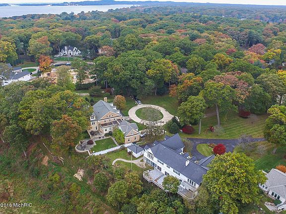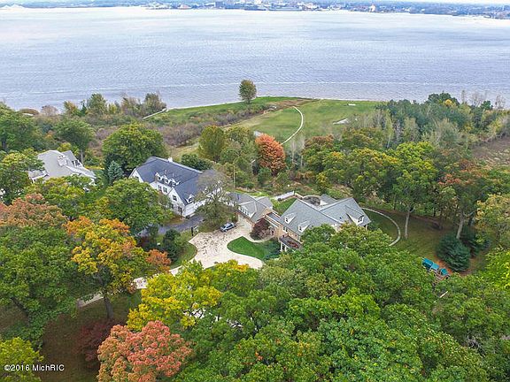 This completely updated Muskegon Lake waterfront home combines the convenience of modern living with the architectural details of the original 1924 Estate. Gourmet Kitchen, guest quarters over the garage, open concept living between kitchen and great room, bowling alley, wine cellar, and a shaving station with multi spray shower in master bath, are just a few of the fabulous amenities. The second floor has a 3-room master suite with bedroom, office, sitting room, bath, large his and hers walk-in closet, and 3 private balconies. 2 more bedrooms each with their own baths, a hidden playroom and laundry complete the second floor. 3 bedrooms are on the 3rd floor along with a large playroom and two reading alcoves. 2 bdrms are joined by a Jack and Jill bath, and the third has own full bath.