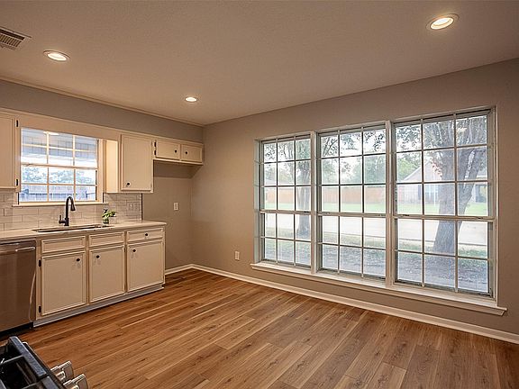 Move-in ready and beautifully updated, this 3-bedroom, 2-bath home with a 2-car garage sits on a desirable corner lot just around the corner from Hillcrest Elementary. Inside, you’ll love the fresh modern finishes—luxury vinyl plank flooring, new paint, and stylish lighting throughout. The open floor plan flows easily from the living area into the dining space and kitchen, creating an inviting atmosphere around the gas fireplace. The kitchen features white marble countertops, a breakfast bar, gas appliances, and extra pantry storage, making it as functional as it is beautiful. The bedrooms are filled with natural light, while both bathrooms offer clean finishes. The garage offers incredible potential—ready to be converted into a game room, man cave, or garage apartment. A covered patio, privacy fence, and deck make it perfect for outdoor entertaining and relaxation. Roof replaced in 2021. Perfectly combines modern updates with practical features, offering comfort & convenience!