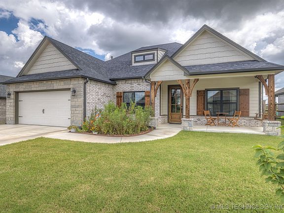 This home checks all the boxes, beautiful, efficient, private, spacious front and back porches, on trend colors, with open floor plan w/ split bedrooms. Just a short drive to Skiatook lake, shopping, sporting events, and arenas for entertainment. Want to travel for a month? Lock it up and leave, great neighborhood.