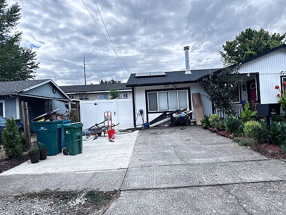 Spacious 4 bedroom 1.5 bathroom home located at 505 S Chehalem Street in Newberg Oregon. This single family home features freshly painted interior and exterior, updated bathrooms, new washer and dryer, new gas water heater, and an energy efficient split heating and cooling system. Solar panels help reduce electricity costs. Bedrooms feature wood flooring and the home includes a covered patio and private back yard with mature trees.