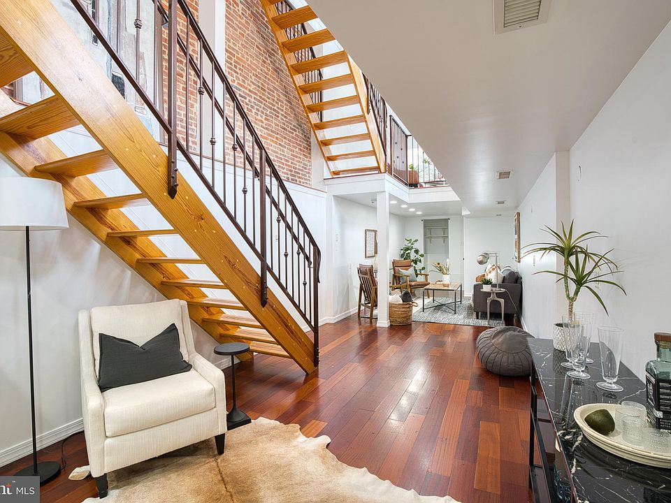 Light-filled and full of character, this updated 3-bedroom end-of-group rowhome in Canton offers a unique open layout and unbeatable location just steps from Patterson Park. The main level boasts hardwood floors, exposed brick, and a striking open-concept design with floating staircase and iron railings that connect seamlessly to the finished lower level. Upstairs, you'll find three bright bedrooms, a spacious full bath, and convenient second-level laundry hookups. The main level features open living and dining spaces flooded with natural light, and the lower level adds flexibility with a cozy second living area, a half bath, and room to add a shower or tub for a future full bath conversion. The kitchen area is ready for your design vision. Fresh finishes, large windows, and thoughtful architectural touches make this home a standout. Perfectly located near the park, restaurants, and all the charm Canton has to offer—this is a one-of-a-kind opportunity with room to grow.