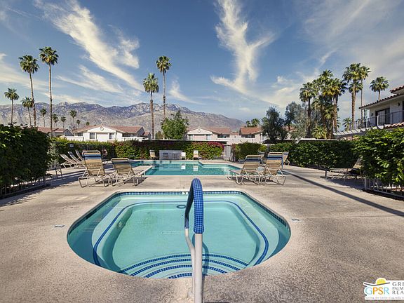 Offered Turn Key Completely Furnished. Upper unit with Pool and Mountain views from the kitchen and guest bedroom. Nicely furnished with two balcony's. Stacked Washer/Dryer has a separate cabinet on the balcony. Gated complex with Pools, Spas and Tennis Courts. You own the land, no land lease just the HOA Monthly Dues. Across the street from Palm Spring High School and close to the Airport and downtown Palm Springs. Shopping Centers are just a few miles away.