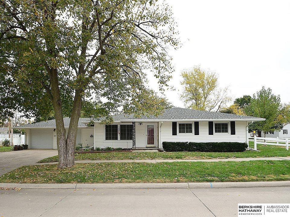 Don't wait to see this well-maintained, West-facing true ranch on almost a 1/2 acre double lot with sprinkler system. Move in and enjoy! Newer roof, updated windows, and vinyl siding greet you as you approach this 3-BR, 2-bath, 2-car garage home. The park-like backyard offers privacy and a perfect place to relax on the 20' x 14' deck. Don't miss the 22' x 11' backyard shed. perfect for storage, mowers, hobby activities, or man cave/she-shed possibilities. Inside you will find two large living areas, a cozy kitchen (all kitchen appliances are included) that opens to the family room, a two-sided brick fireplace, and a home office area tucked away behind the fireplace. Three large bedrooms, an updated full bath, a 1/2 bath, and main floor laundry round out the home. The attached 2-car garage is truly oversized and offers ample storage. Located on a quiet street just blocks away from schools, the park, and the downtown Valley main street. Easy access to Highway 275 to Omaha or Fremont.