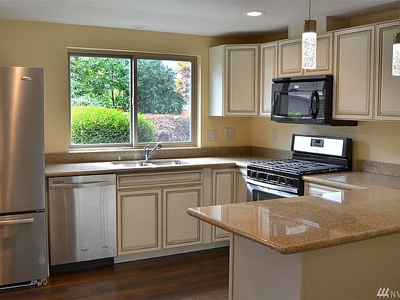 Newly remodeled home with open floor plan. Kitchen features stainless appliances, quartz countertops, wood cabinets, laminate flooring and breakfast nook flowing into spacious dining and living area. Cozy gas fireplace, 2 large bedrooms with tiled bath off master and sliding door to patio. Two large bedrooms upstairs with spacious remodeled bath, wood wrapped windows and wainscoating. Detatched garage with shop. Quiet neighborhood close to downtown Seattle, freeways, parks, schools and shopping.