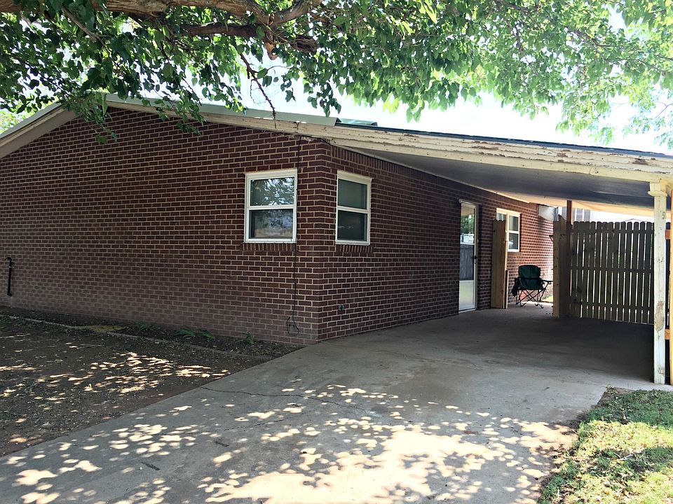 Good location and a good price! BV home with metal roof. New vinyl flooring with the appearance of wood flooring has been recently installed in the active areas of the home. Bedrooms have carpet and walk-in closets. Ceramic tile counter tops in each of the bathrooms. Large backyard with cedar fence and small storage building.