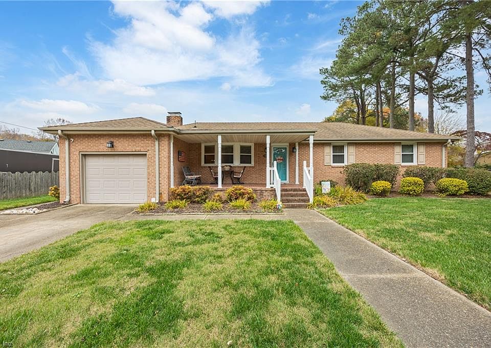 Welcome to Bridgefield in Great Bridge, Chesapeake! This meticulously maintained brick ranch features newer HVAC, roof, and windows for added comfort and peace of mind. Enjoy original hardwood floors throughout the home. The kitchen, remodeled 11 years ago, opens up the space and includes a gas fireplace in the breakfast area, ample cabinet space, and plenty of storage and high end appliances. The property includes a huge, detached two-car garage with a mostly finished area above, offering excellent potential to be converted into an apartment or a man cave. Ideally situated off Mount Pleasant with quick access to Bypass 168. Zoned for Great Bridge High School, Great Bridge Middle School, and Butts Road Primary & Intermediate Schools.