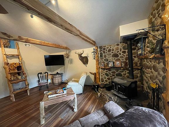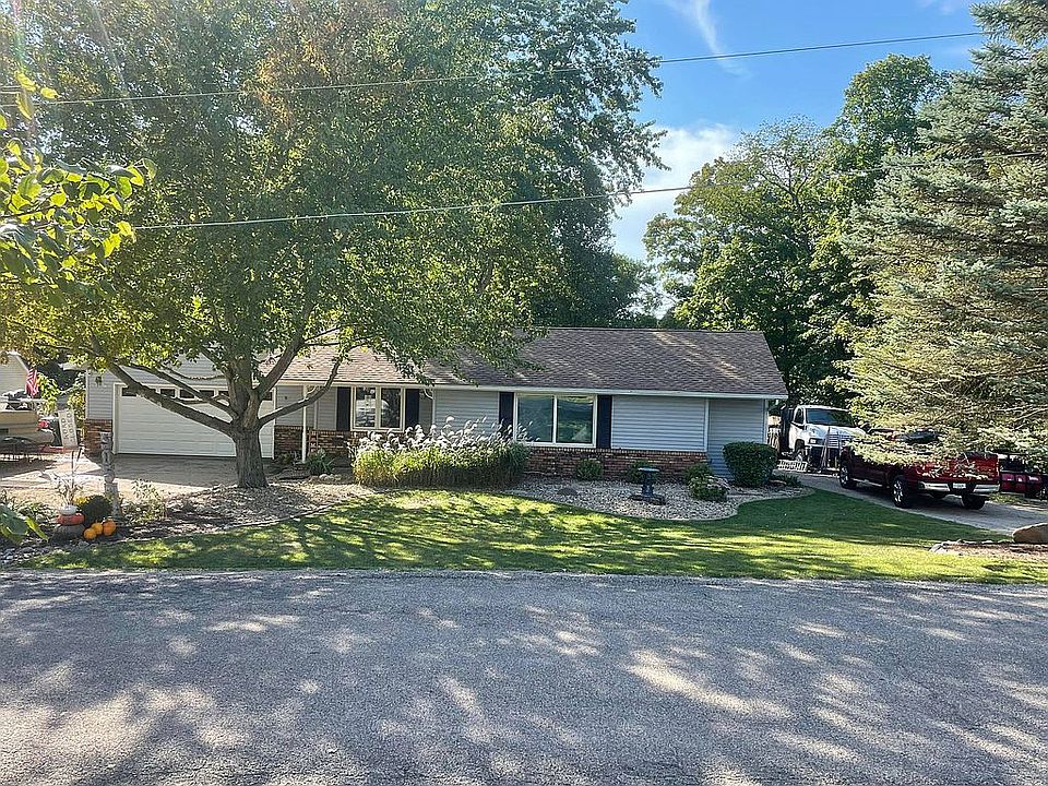 Cozy 3 BR, (w/possible 4th), 1.5 bath ranch in desirable Germantown Hills/MTHS School District with school bus pick-up right at your driveway! Located on a quiet dead end street, nearly 1/2 acre lot surrounded by trees and privacy. Watch beautiful sunsets from the spacious 25x20' great room that features a wood-burning stove with a cobblestone firewall and a cozy cabin feel. Walk out onto the new deck (2022) or host cookouts on the stamped concrete patio in the backyard. Two driveways provide ample parking. Other amenities include a 2 stall heated attached garage, main floor laundry, arched doorways, spiral staircase leading down to the possible 4th bedroom, in the walk-out basement. The large raised garden beds are ready to go for next spring's planting.