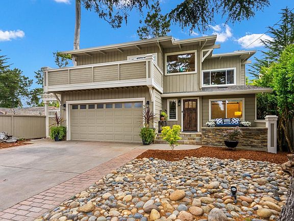 It's time for the beach house you deserve! Start living the lifestyle you've always wanted, and there's no better place to begin than the upper cliffs of Rio del Mar. Imagine a short walk to the best beach in Santa Cruz County, sipping a glass of wine on one of your large private decks, or a friendly chat with passing neighbors from your sunny front porch. You'll also enjoy sunlit days in your oversized, elegantly landscaped backyard. You may try gardening; relaxing with a good book in your cozy greenhouse; or just unwinding under the stars while soaking in your hot tub. And if the fog rolls in, curl up near your fireplace, or cook a warm meal in your beautifully remodeled kitchen. You'll love the feel of the open floor plan with beamed ceilings and plenty of natural light. Enjoy the great separation of space: three bedrooms and full bath downstairs, and kitchen, living space, and primary bed & bath upstairs. Don't wait; start living the beach life today!
