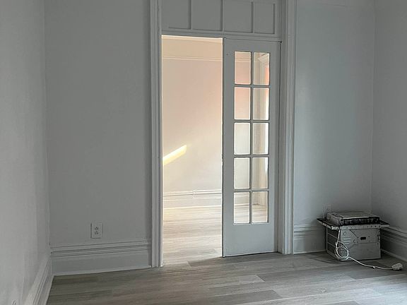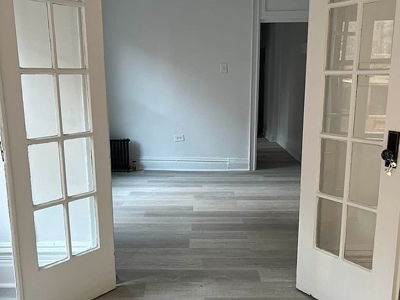 Junior 4 two bedroom in a small walk up property in the heart of Hamilton Heights. This unit has wood-like laminate floors throughout, walk thru living/bedroom separated by glass pane French doors, with all windows facing south.