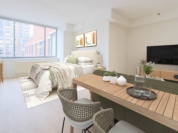 One-time costs: Holding Deposit - $500 Non-Refundable App Fee - $20 -- Mandatory Monthly Recurring Costs: Amenity Use Fee - $48 -- Additional Options: - Storage - $30-$150 - Pet - Cat - $100, Pet - Dog - $100 -- NO BROKER FEES -- West 54th Apartments in New York City sits near Hell's Kitchen. Our spacious apartments feature large closets and walk-in closets. Select apartments include pass-through kitchens and private terraces. Enjoy a work out in the fitness center, relax on the sundeck or barbecue on the patio. We also offer concierge service, an on-site laundry room and bike storage.