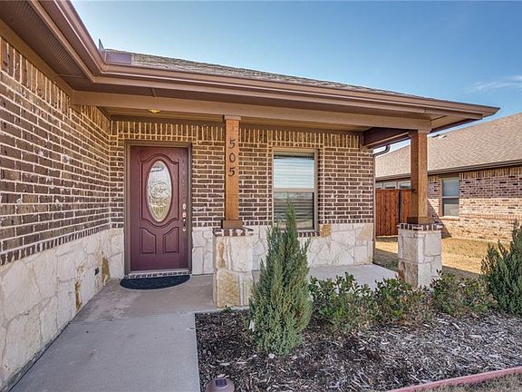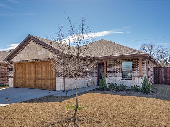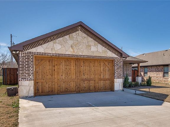 Beautiful Home! Better Than New! Open floor plan with Hand Finished Knotty Alder Cabinetry, SS appliances and granite in kitchen and bathrooms. Master suite with large custom shower, large walk-in closet and hidden custom built-in safe. Wired for sound in living, master & patio. Built-in mud bench and storage in laundry. 6' board on board cedar fence with metal post including 4 gates. Rear double gate and 2 side gates access yard with french drains. Oversized garage with 220 plug and decorative cedar garage door. Large Storage Building Included. Covered front and back patio with ceiling fan. Located appx 5 minutes from Ray Roberts Lake State Park, 1.5 miles from Town Square and within 1 mile of all schools.