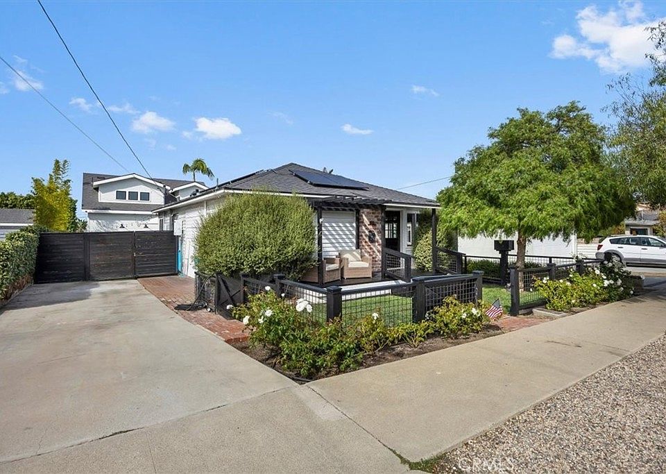 Discover a property that beautifully blends classic charm with modern design, offering 2,708 sq. ft. of versatile living space across a 3 bedroom, 2 bath main residence, a newly built (2024) ADU, a finished recreation room with loft, and an upgraded two-car garage with studio. The main home exudes farmhouse warmth with original hardwood floors, remodeled bathrooms (2020 & 2025), a spacious kitchen with farmhouse sink, subway tile, and granite countertops, plus cozy touches like an electric fireplace. Thoughtful upgrades include central heat and A/C, tankless water heater, copper/PEX plumbing, new roof, solar, and a 200-amp panel (2023). Outdoor living is highlighted by a gated front yard, mature landscaping, automated sprinklers, a new 200 sq. ft. deck, and backyard plumbing for a future fire feature. The newly built (2024) two-story ADU offers a sleek modern contrast, with 2 bedrooms, 2 bathrooms, polished concrete floors, 10’ ceilings, a custom kitchen with new appliances, gas fireplace, upstairs bedrooms with ceiling fans, luxury laminate flooring, and independent solar and utilities. A finished rec room with half bath, kitchenette, and vaulted loft provides additional living or creative space. The polished concrete garage impresses with a full glass high-lift door, beverage refrigerator, custom storage, and a finished studio with wired speakers and A/C. Perfect for multi-generational living, private retreat, or rental income, this unique property blends rustic comfort with modern convenience, all within walking distance to Main Street dining, shops, and the beach, with easy freeway access.