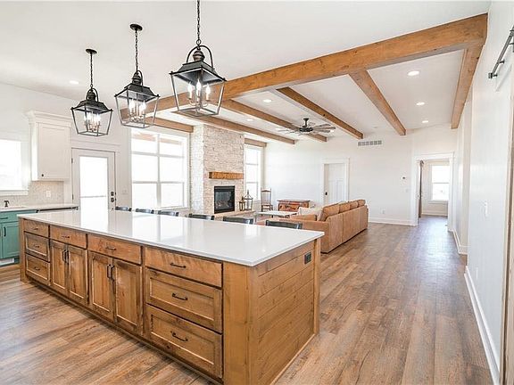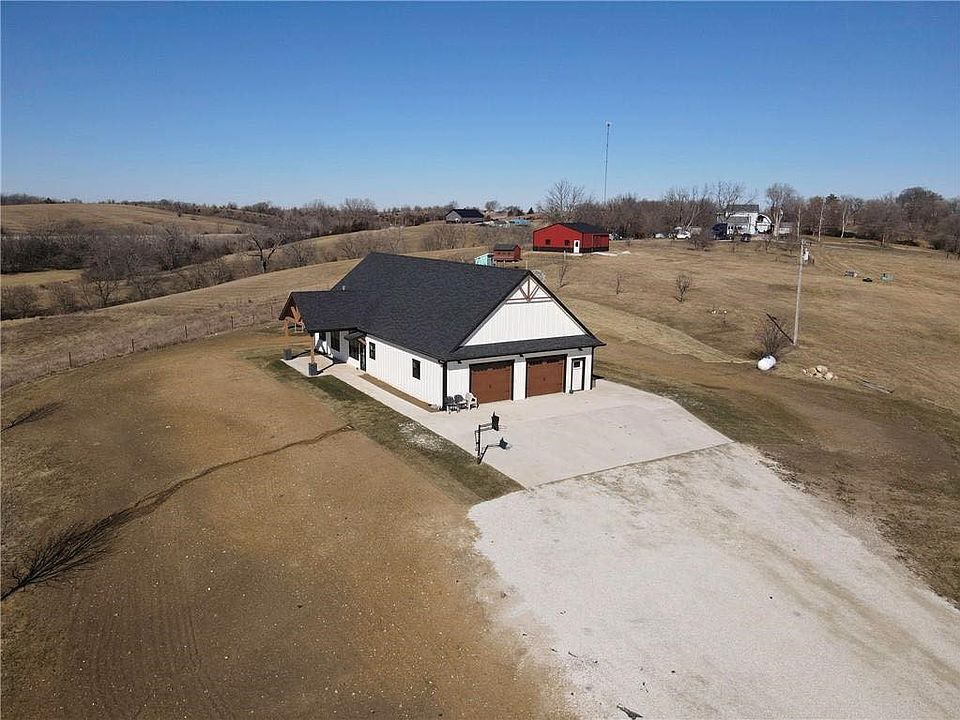 Experience the tranquility of country living on 5 acres. Dramatic views await you as this property delivers serenity merged w/ modern amenities. Custom ranch with zero- entry recently built in 2023! Great room overlooks acres of pasture with Stephens State Forest in the background. Easy access to the highway, yet the rolling hills conceal it. Inside you'll be impressed by the chef's dream kitchen w/ custom cabinets, walk-in pantry, SS appliances, induction cooktop w/ hood, and substantial quartz island that serves as the heart of this home. Open concept living room w/ 10' ceilings features a striking white stacked stone fireplace. Primary bedroom retreat with custom double closets and an en suite bathroom w/ farm sink dual vanity, step in shower, and luxurious soaking tub. Wide plank LVP flooring runs throughout the entire home. First floor laundry room. Finished basement has 9' ceilings, a giant rec room, built-in workstation, full bath, plus 3 bedrooms all w/ custom walk-in closets. Entrance from the fully insulated attached garage provides a mudroom and drop station for organization. Outside enjoy barn-wood stamped concrete patio and covered patio, a large fenced garden area, grape trellis, 6 fruit trees, established rhubarb and raspberries, and a 35x40 outbuilding with built-in shelving creating endless opportunities for storage, hobbies, or a workshop. 1 hour to downtown Des Moines, 30 minutes to Indianola, 10 minutes to Chariton, 20 minutes to Osceola.