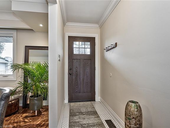 Beautiful fully renovated 3 + 1 bedroom bungalow on a quiet crescent with a huge private pie shaped lot with mature trees, lush landscaping and organic garden boxes backing on to green-space and a peaceful walking trail. This home features a bright open-concept main floor perfect for entertaining. A fabulous kitchen with a large island, quartz counters, gas range and plenty of storage. Hand-scraped Brazilian hardwood floors and pot lights throughout on both upper and lower levels. The lower level can be conveniently accessed from a separate side door and features a gorgeous renovated 3-piece bath with heated floors, additional bedroom or office, laundry facility, open recreation space, storage room and cellar. Exterior updates in 2018 include new front and patio doors, windows soffits and eaves with gutter guard, new garden shed and fence. This residence is in close proximity to all amenities, major highways and walking distance to schools, parks and just minutes to bustling Downtown Burlington and the lake. Don't miss this beautifully renovated home located in Southwest Burlington, one of the cities most desirable neighbourhoods. Please view multimedia link for walk-through video, 3D tour and floor plans.