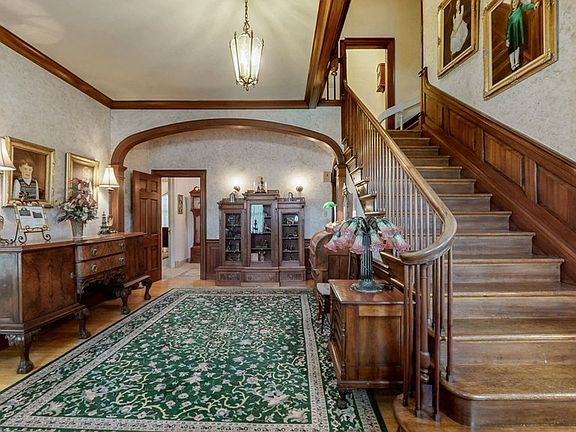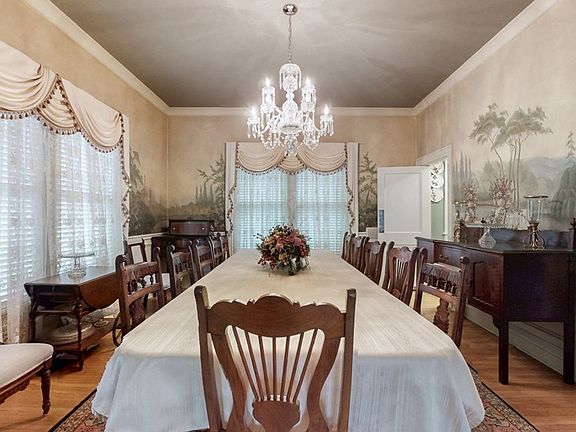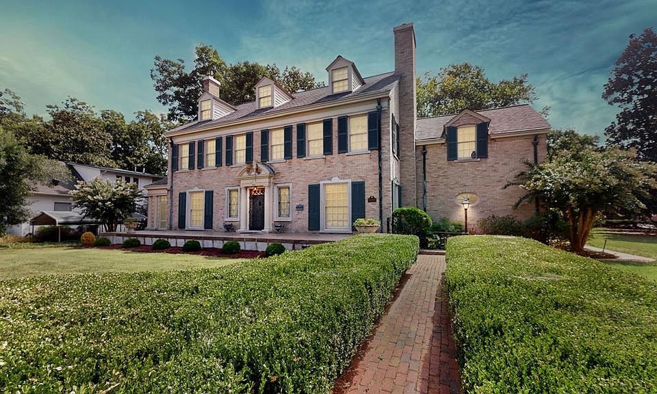 Colonial Design w/ Georgian Revival Influence! This Classic Home built in 1920est. & remodeled in 1933. Master Craftsman's features slate in spacious den w/fireplace and dinette. Beautiful open foyer w/10 ft. ceilings & grand stairway. Living room features new hardwood floors w/ fireplace. Formal dining room features mural painted walls in 1934 from early 1800 french wallpaper design. 5 br.w/ 1 currently used for office w/fireplace, 3.5 baths, cherry & walnut woodwork & original hardwood floors.Butlers pantry for servants, add'l stairway to 2nd level.Third level ballroom w/1/2 bath & hardwood flooring. Full basement w/ 1/2 bath that has exterior & interior entrance. Home has gas generator, Energy gas hot water heater, copper gutter system, screened-in porch, attached 2 car garage & brick detached garage. Rear patio w/ fountain/stone floor, garden house w/electric, irrigation system, spacious corner landscaped lot w/beautiful shade trees and garden area. Sq. Ft. taken from tax records.