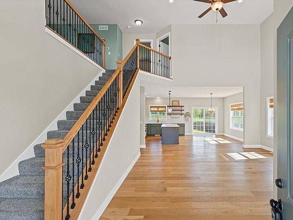 4-bedroom, 2.5-bathroom quality built home in Sangamon Fields boasts upscale finishes throughout, highlighting the elegance of its design. Enjoy the grandeur of two-story high ceilings that flood the space with natural light. The main floor features a luxurious primary bedroom complete with a spacious walk-in closet and full bath, open floor plan for entertaining and hard surface flooring throughout. Upstairs you'll enjoy the additional 3 bedrooms, bathroom, and a large loft space with endless possibilities. All this on a full, unfinished basement with roughed-in bathroom space. Step outside to a beautifully fenced backyard, perfect for entertaining or relaxing in privacy.