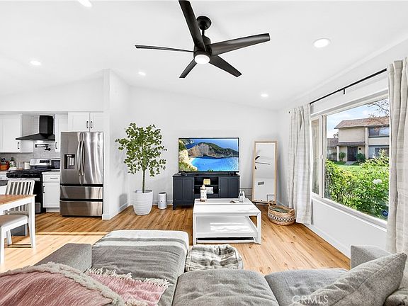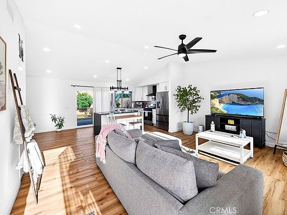 Welcome to this beautifully remodeled 4-bedroom, 2-bathroom townhome located in Riverside, CA. Featuring an open-concept floor plan with soaring ceilings and bright, airy white walls, this home is filled with abundant natural light throughout. The redesigned kitchen showcases a stylish built-in bar, sleek island, and an elegant chandelier—perfect for both everyday living and entertaining. Both bathrooms have been tastefully renovated with cool, modern tones to create a spa-like experience. Additional highlights include a 2-car garage and a spacious backyard ideal for barbecues and gatherings. Enjoy community amenities such as a private pool and a nearby park, offering the perfect blend of comfort, convenience, and recreation for a vibrant Riverside lifestyle. Easy access to the two-car garage that has a Tesla charging connection.