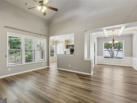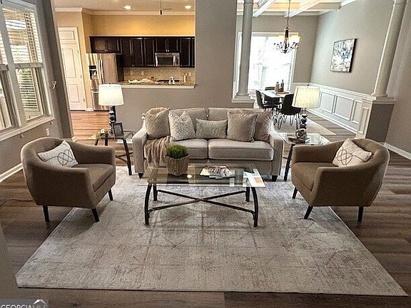 PRICED TO SELL...Very motivated seller. Move-in by year-end. Primary-on-Main. Stunning walk-out backyard. Lawn maintenance included in HOA monthly fee. Meticulously maintained Craftsman Ranch with $77K in upgrades and renovations. A move-in-ready home on a cul-de-sac in the sought-after Kingswood Community of South Forsyth. From the moment you arrive, you'll notice the meticulous attention to detail-and the backyard will leave you speechless. Fully fenced for privacy and framed by acres of serene woods, this outdoor oasis features professional landscaping, a spacious patio, and a 14-foot remote-controlled SunSetter awning with integrated LED lighting. An adjacent covered lanai-already wired and ready for a big-screen TV-makes it perfect for fall football, while the stone firepit keeps the good times going on chilly nights. Inside, the two-story Great Room welcomes you with a striking wood-and-iron staircase leading to an oversized loft, full bedroom, and bathroom-ideal for guests, family, or a home office. Much of the first level has brand-new LVP flooring, and the Great Room is pre-framed for a fireplace so you can personalize it to your style. A coffered-ceiling Dining Room seats up to 12, while the open-concept Kitchen shines with granite countertops, a center island, updated stainless steel appliances (gas range, refrigerator, microwave, and dishwasher), full-size pantry, and a stylish tile backsplash. The Primary-on-Main overlooks the wooded backyard, creating a tranquil retreat with a spa-style bath featuring dual sinks, a soaking tub, separate shower, private water closet, and a custom walk-in closet for two. Owners installed a state-of-the-art water filtration and water softening system raising the spa-style to a new level. Two additional bedrooms share a full bath with separate vanities, and guests will appreciate a completely separate powder room. A formal foyer, full-size laundry room, and two-car garage complete the main level. Kingswood is a vibrant, active HOA community offering a clubhouse, pool, tennis/pickleball courts, and year-round social events. All of this is just minutes from GA-400, The Collection at Forsyth, Cumming City Center, Big Creek Greenway and the highly anticipated new Whole Foods Market.