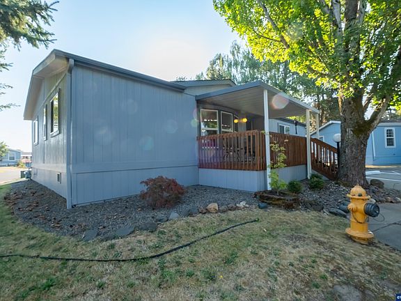 This one is a charmer. Located in Columbus Greens, providing easy access to Albany shopping and schools. Formerly the park office managers office, this corner lot home features 3 parking spots, 2 at the carport and 1 additional. Recently updated BOTH bathrooms, as well as exterior paint in 2024 and vinyl windows in 2023. Quality laminated flooring also. Enjoy the covered deck for coffee in the morning, and access to a shed in the carport for storage. Seller to credit Buyer 5 months of park rent at closing.