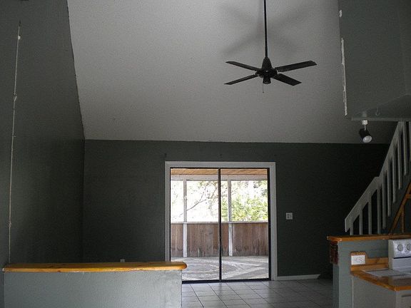 Exterior Features: Home has large dark stained wood for the siding and a newer architectural shingle roof, and gutters are in good shape also All windows and aluminum eaves are intact, along with a good size rear porch, that has a decorative tile floor. The back yard has a chain link fence that surrounds the entire yard, along with a shed. The home sits on a concrete slab and driveway. Interior Features: This home is well maintained and has 12 x 12 white tile throughout the home except the bedrooms which has carpet, and the upstairs loft area is hardwood, all is in good shape.There is a nice loft area that is upstairs and has two different rooms. Kitchen has a nice side by side refrigerator electric stove and dishwasher that look in good condition. all cabinets in the kitchen and bathroom are present and in good shape, along with extra storage cabinets in the garage which is a two car attached. There is a hot water heater and the air handler and outside ac unit is present.