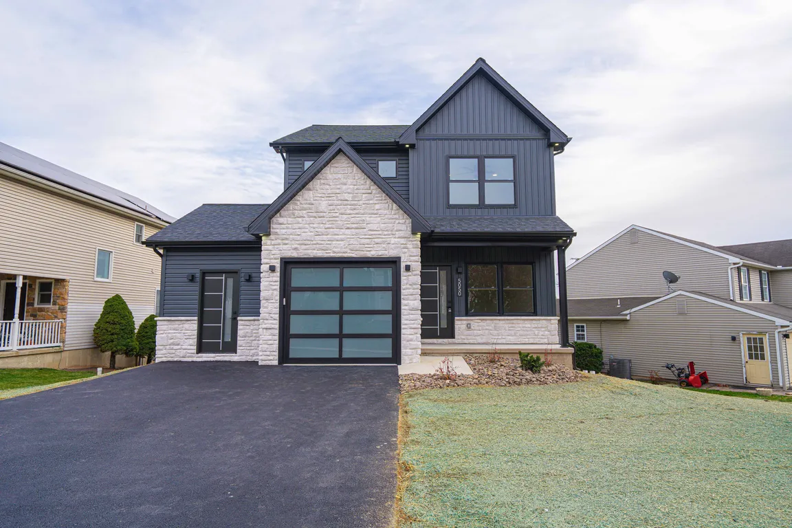 Stone veneerLuxurious quartz countertopsBoard-and-batten-style vinyl sidingPremium samsung appliancesCovered front porchRefined finishesSmart garage door opener