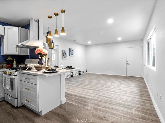 Stunning, remodeled end unit condo in clean complex, with irregular-shaped pool and large private patio for evening dinners and gardening! Centrally located near shops, restaurants, and the 710 and 405 freeways. Enjoy a fully renovated designer kitchen with a new rectangular single bowl sink, fixtures, cabinets, (some dotted with convenient slide-out shelves), a floor-to-ceiling pantry cabinet, designer Stratford wall porcelain tiles, and swing-arm adjustable wall lights with a country vintage look. Two live-hedge oak shelves imported from Canada grace one of the kitchen walls. New GE appliances include a white dishwasher and white gas range/oven with custom gold knobs and gold trims. An elegant, gold brass embellished white hood hangs over the stove. New GFI plugs are installed. The new quartz island is the perfect place to have dinner with family. The new luxury vinyl plank flooring made to look like hardwood spreads from the kitchen all the way to the bedrooms. Large new windows and recessed lighting illuminate the entire home. You will also find new custom-made mirrored sliding doors. Ceiling fans in both bedrooms. Feel rejuvenated after showering under the golden, 12-inch rainfall high-pressure shower head. Note all the new golden fixtures, lights, elegant blue tiles, and tilting beveled vanity mirror. Four large floor-to-ceiling cabinets offer plenty of storage in the hallway area by the bedrooms. The remodel is impeccably finished with the addition of crown molding and new hardware throughout. The condo shines with all new interior paint. New lighting and epoxy flooring modernize the patio. The laundry room, one parking spot -first spot on left when facing parking from 5050 Linden Ave - storage space and safely gated pool are all a few feet away from your unit. The HOA allows you to have three pets, and also allows you to hire a plumber to install the connections to have your own washer and dryer inside your home. Like living in a new condo at a fraction of the cost!