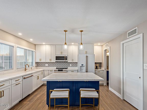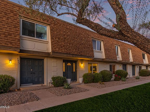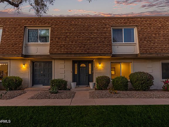 Beautifuly updated Townhouse at Chateau De Vie in the Heart of Scottsdale. Located minutes from Old Town Scottsdale, Fashion Square, Spring Training, Camelback Mountain, Chaparral Park, Greenbelts, Hiking, Golf, Great Dining & Entertainment. Inside this Beauty, you'll find clean lines & a smooth design that favors a modern feel, showcasing recessed lighting, Luxurious Vinyl Planking, and stylish light fixtures. The sizable living room welcomes you upon entry, providing a private space, while the dining area is open to the spectacular kitchen, promoting functionality & convenience. Outfitted with White Shaker cabinetry & Gold hardware, GE Cafe Appliances, Custom Tile Backsplash, Quartz Counters, and a contrasting Large Island. The Kitchen transitions into an oversized private patio area with brick flooring, & delightful pergola perfect for entertaining!! Also allowing you to lounge & relax after a long day. This Fantastic Lake Community includes lush green areas, a pool, and 2 car covered assigned parking. You won't want to miss seeing this move in ready gem in Scottsdale!!