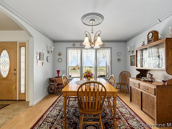 This custom designed, one-owner home offers the serenity of wide-open spaces and country living but is still only minutes away from the schools in Burns and Carpenter. At over 4500 sqft and featuring 5 bedrooms, 3.5 baths, a formal dining room, two living spaces, a huge rec room and tons of storage, there is plenty of space for everyone in the family. When designing this ranch style farmhouse, the owners focus on comfort and functionality is apparent as soon as you walk through the door. The oversized main floor laundry room, finished sunroom and enormous kitchen highlighted by granite countertops, a large island, pantry and double wall ovens are just a few of the things to love. Don’t miss the heated floors throughout the main level and beautiful gas fireplace too! Enjoy the peacefulness of rural living while spending summer evenings on the huge west facing deck, playing in the sodded front and back yards or working on projects in the 2,360 sqft shop. No covenants and surrounded only by the wheat fields and endless possibilities!