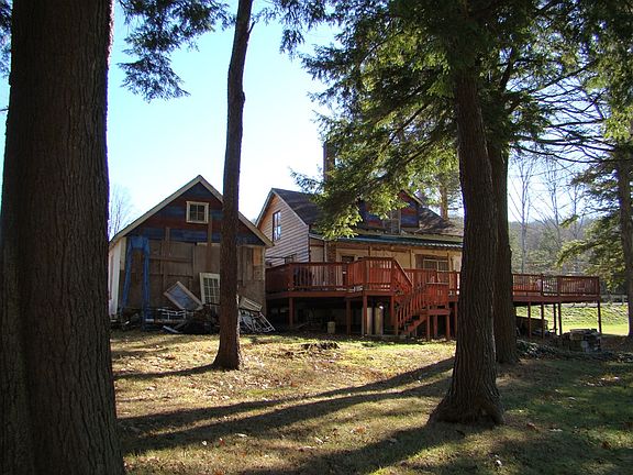Recent survey on file. 3-bedroom camp on 10.52 acres with access to the Nine Mile River/PA Commonwealth Lands behind. Being sold "AS IS". This is for Land Loan/Conventional/cash deal only. With some maintenance this scenic cabin can be your full-time residence or recreational retreat. septic is 1,000 gal holding tank and water is from Artesian well located on the side of the house off deck. This borders rt 6 w in the front/South, Sigmans/Dry Run Creek on the East to the 9 mile Back/North side to railroad grade then Old Pine Log Motel/Christman's on the West back to Rt 6.