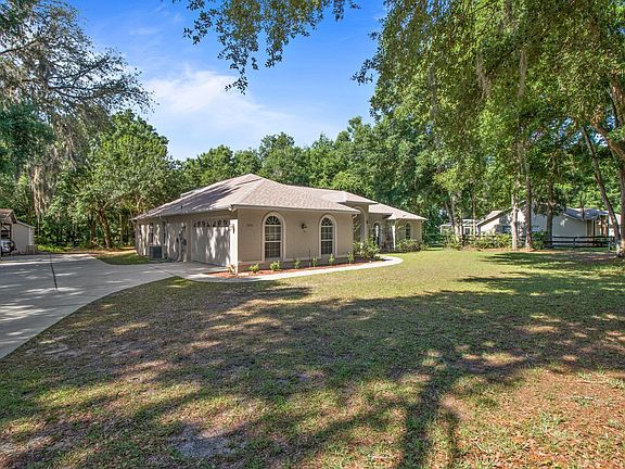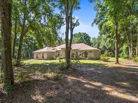Lovely Single Family Home located in one of Ocala's premier neighborhoods, Timberwood. Nestled on 1+ Acre, this exquisite property features; 3 BR/2 BA plus spacious study or optional 4th bedroom and den that could double as guest bedroom or office. Master suite & luxury bath offers; walk-in closet, dual sinks with granite countertops, and a captivating pebble & stone tiled walk-in shower. The gourmet kitchen combines top of the line stainless steel appliances, granite countertops, and huge pantry. Generously-sized living/great room overlooking the covered lanai/porch and massive yard in a serene park-like & forest setting. Pole Barn and Shed both have full electric. This elegant home has been updated with fine taste & style! Updated HVAC, Kitchen, Bathrooms, & Flooring 2016. New Roof 2018.