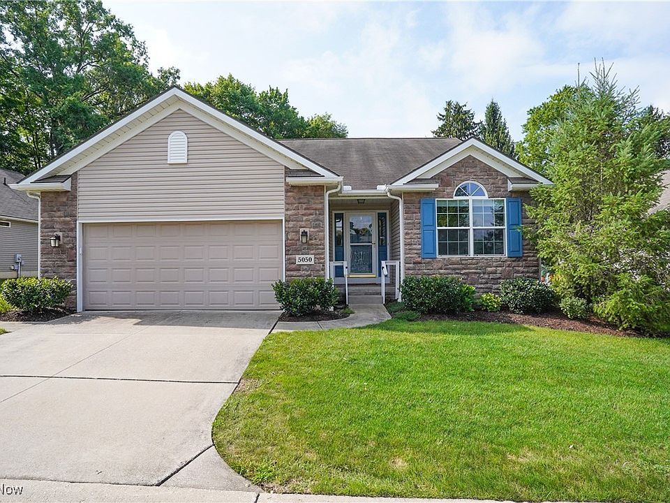 Move in Ready! Beautiful 3 bedroom 2 bath ranch on a quiet street. Low maintenance living, lawn care and snow removal provided. Updated guest and main bath with glass shower door and granite countertops. Open kitchen and great room with fireplace. FULL basement with finished family room and plenty of room for storage. Serene back deck with mature trees for privacy.