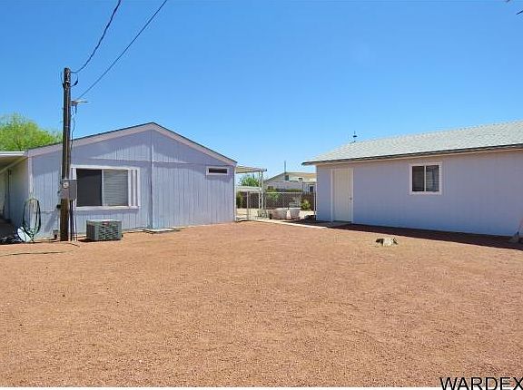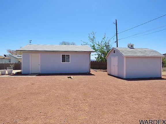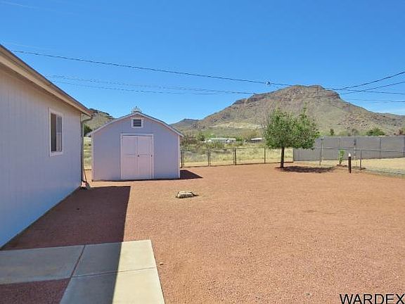 This 2 bedroom 2 bathroom 1994 groundset manufactured home is Move in Ready. Home was freshened up two years ago with new paint inside & out, new blinds, new carpet, new bathroom flooring & new high rise toilets. The eat in kitchen has gas range, stainless refrigerator, lots of counter space, pantry, built in desk & built in hutch with shelves that open into the living room. Vaulted ceilings, walk in closet, gas furnace, central air, washer & electric dryer, plus security doors. Detached 24 X 24 garage & a large storage shed on a fully chain fenced and cross fenced lot with 12 FT RV gates front & back. Nice covered concrete patio that runs the length of the home, long concrete drive, auto drip system & great mountain views. 5051 N. Huffman Rd. Kingman, AZ
