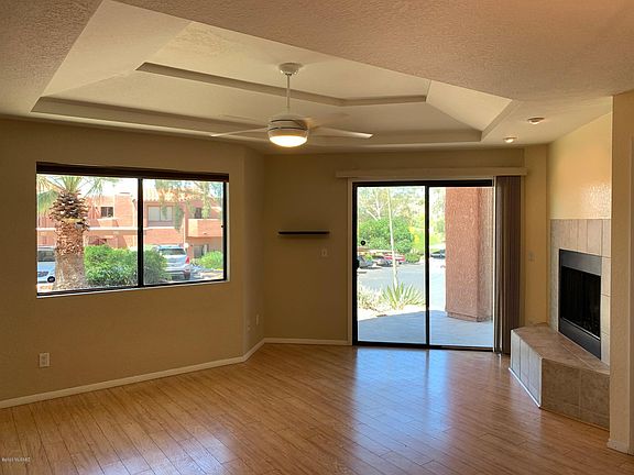 Fabulous ground floor 1BD/1BA condo in the prestigious Ventana Vista Condominiums. Laminate wood flooring throughout, no carpet! SS appliances, granite counter tops in kitchen and bathroom, fireplace. Additional upgrades make this condo stand out from all others; ceiling fan in the living room, recessed and dimmable lighting in the kitchen & living room, newer windows are more efficient and quiet, tinted for privacy. Newer washer/dryer in the unit. Beautiful mountain views! Resort-like amenities include heated pool, 2 spas, tennis court, fitness center and clubhouse. Call today for a showing!