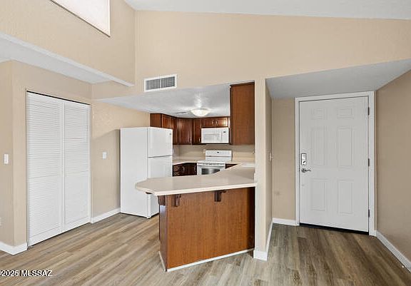 Nestled within the gated Ventana Vista condominium community, this charming two‑bedroom, one‑bath unit offers approximately 976  sq ft of comfortable living and was built in 1986. The warm, split‑layout features a cozy living area and a fireplace, ideal for relaxing evenings at home. The kitchen is efficiently arranged, serving the adjacent dining and living spaces. Enjoy private balcony views of Catalina Foothills, a perfect spot for morning coffee or sunset reflection. The bedroom includes generous closet space, and the single bathroom provides functional comfort. Situated just minutes from Sabino Canyon's scenic trails and waterfalls, this property offers both serenity and easy access to shopping, dining, golf, and outdoor recreation in the Catalina Foothi