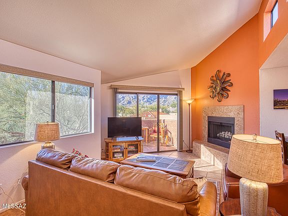 Perfect Tucson lifestyle! Best location in gated Foothills community offers privacy & Catalina mountain views. Open, inviting & light plan features fireplace & beautiful balcony. Resort-style community pool, spa, pickleball & tennis. Welcoming community has many seasonal & long term residents. Close to Sabino Canyon Park, diverse dining, coffee, new Tucson Auto Museum & shopping. This unit has been a successful vacation rental with many repeat guests who love the location. Covered parking, recent roof, extra storage, community gas grill near unit. Perfect home or lock & leave 2nd Home. Can be sold furnished so MOVE In & Enjoy for 2026!