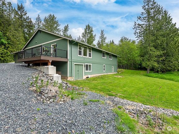 A classic NW contemporary rambler in an idyllic natural setting on 5 private acres includes it all for modern country living w/ the convenience of being just 10 mins to town. A gorgeous chef's kitchen embodies the heart of this home w/ high-end Thermador fridge, butler pantry & cast iron wood stove. 3 generously sized bedrooms, remodeled primary suite & laundry all on the main. Extensive recent improvements ensure the home is structurally sound & well maintained for many years to come w/ new deck, hardie siding, trim, perimeter drainage & encapsulated crawl space. Heated shop on lower level w/ exterior access, rubber flooring & stainless workbench. Garage equipped w/ 50 amp, 220 plug 60 amp circuits & wired for generator. Pre-inspected.