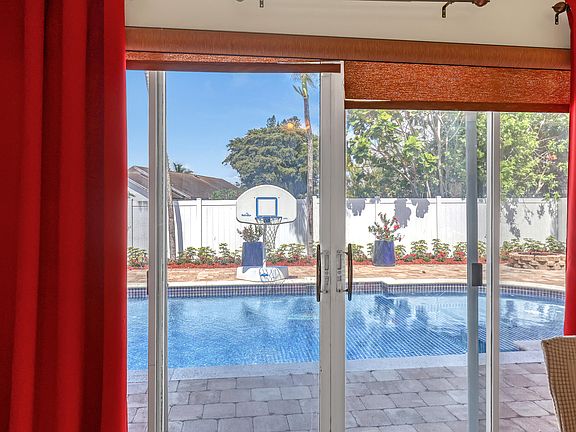 Lakes of Sherbrooke! CBS 3-bed, 2-bath home w/marble flooring, wood flooring, Crown molding, chair rail throughout. Beautiful marble countertops AND backsplash, SS appliances (brand new fridge), open kitchen with bar top allowing pool views. Abundant natural light, featured lighting inside and out! Guest bath: double vanity, custom floor-to-ceiling tiled walls w/walk in shower. Primary bath: Steam shower! w/bench and exquisite tile work. Pool access from primary and dining rooms. Entertain around the huge glass tile pool, 6 person spa, fire pit and lush landscaping surrounded by Palm Trees. Totally paved, outdoor shower, custom irrigation system, FULL HOME generator to convey. BRAND NEW ROOF! Great Schools, Unbeatable location. See document section to learn about your new lifestyle.