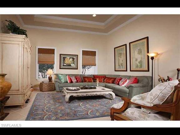 Beautiful unfurnished courtyard home with pool. Airy and open with high tray ceilings. You will love to come home every day. Banyan Woods is a gated community with play ground, basketball court and a private well equipped gym. 2240 sq. ft. Courtyard home with pool. 3 BR and 2 1/2 bathrooms with high ceilings. Open and airy. Unfurnished. Centrally located in prestigious Banyan Woods community. Pool within courtyard with beautiful planter and cascade. Covered lanai. Master bedroom has two walking closets.Large master bathroom with jacuzzi tub and separate large shower. Two extra bedrooms with windows. Fully appliance equipped kitchen. Ceiling speakers in lanai. Laundry room with washer and dryer. House has 2 car garage. Banyan Woods is a family oriented, quiet and safe gated community on Airport Rd. just south of Pine Ridge Rd. Close to beaches and walking distance to shopping mall, groceries, restaurants, YMCA and more. Excellent school district. Community has a 24 hours private gym, children's playground and basketball courts. Non-smoking. Well behaved dogs may be considered. Potential tenants will be required to go through the HOA application process which requires background and credit checks and letters of reference. First, last and one month rent deposit at time of lease. Owner will pay HOA quarterly dues, pool maintenance and landscaping maintenance. Renters pay electric, water and cable. Photos were taken when house was furnished when we lived there, presently it is unfurnished and is rented as such. Owner pays for pool maintenance, and lawn maintenance. Renter pays utilities and cable.