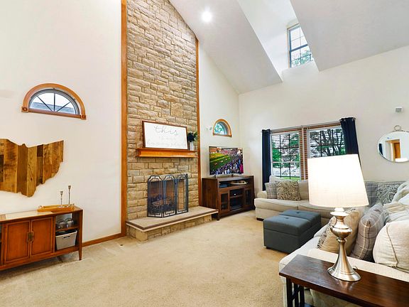 This Southern Point home boasts a first-floor primary bedroom with an updated ensuite bathroom, offering convenience and privacy. Upstairs, discover two additional bedrooms, loft, updated full bath, perfect for accommodating family or guests. The heart of the home is the impressive 2-story Great Room, highlighted by a floor-to-ceiling stone fireplace that creates a cozy atmosphere. Dormer windows flood the space with natural light. Step outside onto the oversized deck, surrounded by a tree-lined yard that offers both privacy and tranquility. Perfect for outdoor gatherings or peaceful relaxation.