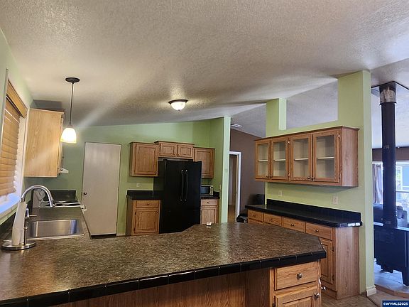 This is a very nice home. Large Living Rm, Dining Rm - Kitchen Combo. Kitchen is lg with Eating Bar and nice counter space. Primary BdRm at one end, includes lg BathRm w/ soaking tub and Linen Closet, BdRm 2 & 3 are at the other end of home. Nice area for outdoor Living, room for garden and quiet enjoyment. Wood Shed, and Storage Shed.Septic and community well