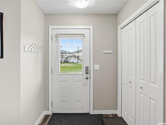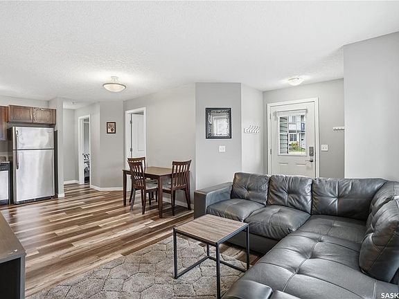 Exceptional condo in the heart of Harbour Landing is a great starter home or investment. Shows 10/10, this owner occupied 2 bedroom, 1 bathroom condo has been very well kept by its owner. Quiet development. Main floor unit. Open concept living room, breakfast nook area and kitchen with stained maple cabinetry, plenty of cupboard space and additional pantry storage. Both bedrooms are bright and spacious. Full bathroom. Laminate flooring throughout. Tankless water heater and in-floor heat throughout the condo. BONUS is 2 electrified parking stalls! Condo fees are $200.56 per month and include common area maintenance and insurance, reserve fund, snow removal and lawn care, garbage pick up. Pets are allowed with restrictions. Close to all south end amenities of Grasslands and easy access to Highway #1 and the Regina Bypass.