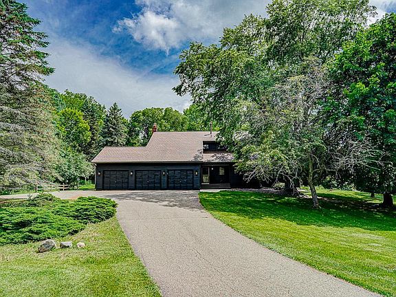 Tucked into one of Lake Elmo’s quietest corners, this lovely home offers a rare blend of tranquility, functionality, and refined design. Set on a lush 1+ acre corner lot just a block from Lake Jane, it is surrounded by and filled with nature, yet only 20 minutes from downtown St. Paul and 30 from MSP Airport, a block from Lake Jane, and so close to Sunfish Lake Park and Lake Elmo Park Reserve! The refreshed exterior will impress you with new LP siding, soffits, and modern lighting. The new stamped concrete patio has a beautiful covered lounge area with a tongue-and-groove ceiling detail, ceiling fans, and recessed lighting. The adjacent paver patio is punctuated by a bonfire ring making your outdoor experiences all year round unforgettable. Inside, the thoughtful layout places all three bedrooms upstairs, each with large windows framing wooded views. Hardwood floors flow throughout the main level, where a gas fireplace anchors the living room. Custom built-ins and a wet bar elevate the space as do the dimmer switches that make for beautiful ambiance. The classic kitchen with cherry cabinetry, quartz countertops, has ample storage and opens to the dining room perfect for intimate at-home nights or can accommodate a nice dining table for holidays and celebrations. Multiple living zones create flexibility for work, play, or entertaining—choose from the fabulous vaulted 3-season porch, or lower-level family room (freshly painted) ideal for movie night, game tables, or a home gym. An insulated, heated garage, updated bathrooms, and beautiful landscaping round out the offering. Nearby, you'll find neighborhood parks, hiking and biking trails, Elmo’s Dog Park, and year-round outdoor recreation.