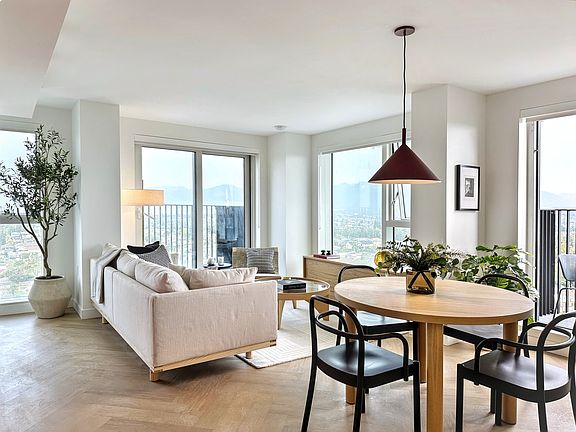 Designed by Perkins&Will and developed by Westbank, 5055 Joyce is a striking tower inspired by northwest modernist architecture, featuring a dynamic vertical form and a welcoming public plaza. Residents enjoy a full suite of amenities designed for comfort, wellness, and connection including a rooftop lounge with panoramic city views, a fully equipped fitness studio, coworking and virtual meeting spaces, a rooftop children's play area, and a secure bike hub for everyday ease. High-speed managed WiFi is provided throughout the building, and all homes are pet-friendly.