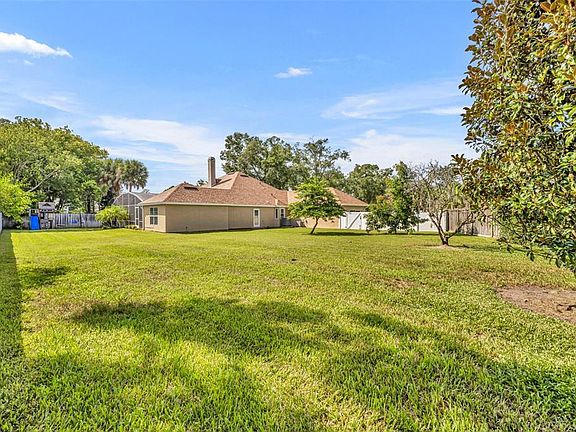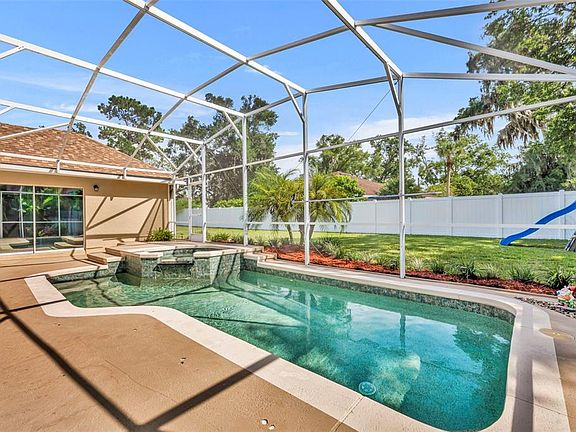 Expect to be impressed with this exceptional estate home in desirable Tall Trees! Nestled on nearly a HALF-ACRE cul-de-sac lot, this residence boasts a beautifully manicured lawn, lush landscaping, and a thoughtfully designed layout for COMFORTABLE everyday living. Inside, the living and dining rooms are anchored by a striking two-sided stone fireplace, while French doors open from the living room to the covered lanai. The kitchen is a chef’s delight with rich wood cabinetry, ABUNDANT COUNTER SPACE, a movable island, and a built-in desk for added CONVENIENCE. The owner’s retreat is truly a SANCTUARY—featuring a 33x13 suite with two versatile living areas, direct pool access, and an ensuite with a beautifully tiled walk-in shower, soaking tub, and dual vanity with granite counters. Two secondary bedrooms and a full bath are tucked off the family room, while a unique, separate fourth bedroom suite offers incredible FLEXIBILITY. With its private entrance, full bath, and bright picture window, this space functions beautifully as a MULTI-GENERATIONAL living area, guest quarters, home office, or personal gym. Its design makes it equally perfect for extended family, long-term guests, or even rental potential. Outdoors, the fenced backyard provides privacy for enjoying the sparkling pool and patio. Just across the street, you’ll find community amenities including a pool, pickleball, tennis, and racquetball courts. With a BRAND NEW ROOF and 2024 water heater, this home offers both PEACE OF MIND and an outstanding lifestyle. Truly move-in ready and waiting to welcome its next owners!