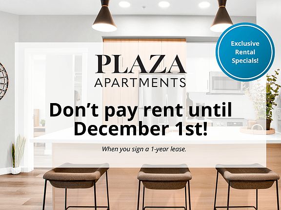 Enjoy convenient amenities, prime location and a pet-friendly community at Plaza Apartments. Our one, two and three bedroom suites feature full-size stainless-steel appliances, in-suite laundry and contemporary finishes such as luxury vinyl plank flooring, large windows, quartz countertops, and high-gloss, soft-close cabinetry.As a resident of Plaza Apartments, you'll enjoy exclusive access to the on-site resident clubhouse. You can host an event in the resident lounge with a games room and community kitchen, work out in the commercial-grade fitness centre or work remotely from the co-working space - the possibilities are endless!