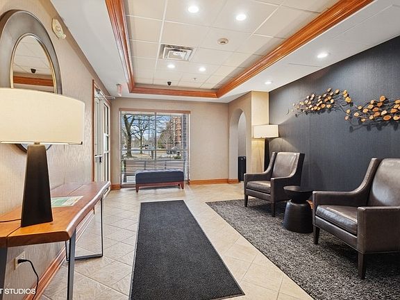 This spacious 3-bedroom, 2-bathroom corner unit was the developer's model unit, offering nearly 2,000 sq. ft. of beautifully designed living space that blends comfort, convenience, and modern elegance. Step inside to a welcoming foyer and a custom laundry room with white cabinetry for added functionality. The open-concept layout seamlessly connects the living, dining, and kitchen areas, creating an ideal space for entertaining or relaxing. With western and northern exposures, the unit is bathed in natural light, accentuating the Brazilian cherry floors and sophisticated details throughout. The eat-in kitchen is a chef's delight, featuring wood cabinetry, Corian countertops (a durable, man-made alternative to stone), and stainless steel appliances. High-end light fixtures and custom shelving add both style and practicality, while professionally cleaned carpeting ensures a move-in-ready experience. The primary suite serves as a private retreat, boasting a large walk-in closet and a spa-like en-suite bathroom, perfect for unwinding at the end of the day. The split floor plan offers versatility, making the additional bedrooms ideal for guests, a home office, or personal use. One of the bedrooms even features American cherry flooring, a thoughtful upgrade that adds warmth and character. Enjoy peaceful mornings and stunning sunset views from your private balcony. Radiant heat throughout ensures unmatched comfort during the colder months. This unit also includes two heated indoor garage parking spaces, conveniently located next to each other, along with two large storage rooms for ample organization. The building's monthly assessment includes cable, adding even more value. Located near parks, top-rated schools, restaurants, and the Old Orchard Shopping Center, this home is perfectly positioned for both convenience and entertainment. Don't miss this stunning Skokie gem-schedule a showing today!