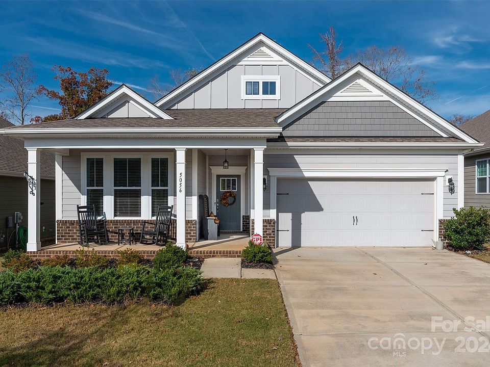 Great setting-welcoming "rocking chair" front porch looks out onto a neighborhood park plus back covered porch with privacy overlooking wooded common area. 3 BR/2 Full BA, drop zone area, many windows and natural light flowing throughout. Open floorplan, greatroom with gas fp. Gourmet kitchen with granite counter tops, tile backsplash & stainless appliances incl 5 burner gas cooktop vented to the exterior. Primary BR features a large walk-in closet, dual vanity and oversized tiled shower with seat. Extensive moldings throughout the home; hardwood floors in the entry hall, kitchen and dining area; front and rear covered porches. 2 car garage with tons of built-in storage. Gas tankless water heater. Very few steps in and out. Outstanding neighborhood amenities. Perfectly placed between charming downtown Waxhaw and Charlotte.