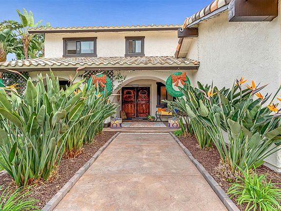 As you arrive, you’ll be impressed by the home’s curb appeal featuring a stained circular driveway, mature landscaping, stamped concrete walkways, a custom front entry door, a beautiful tile roof, and a three car garage with RV parking potential.