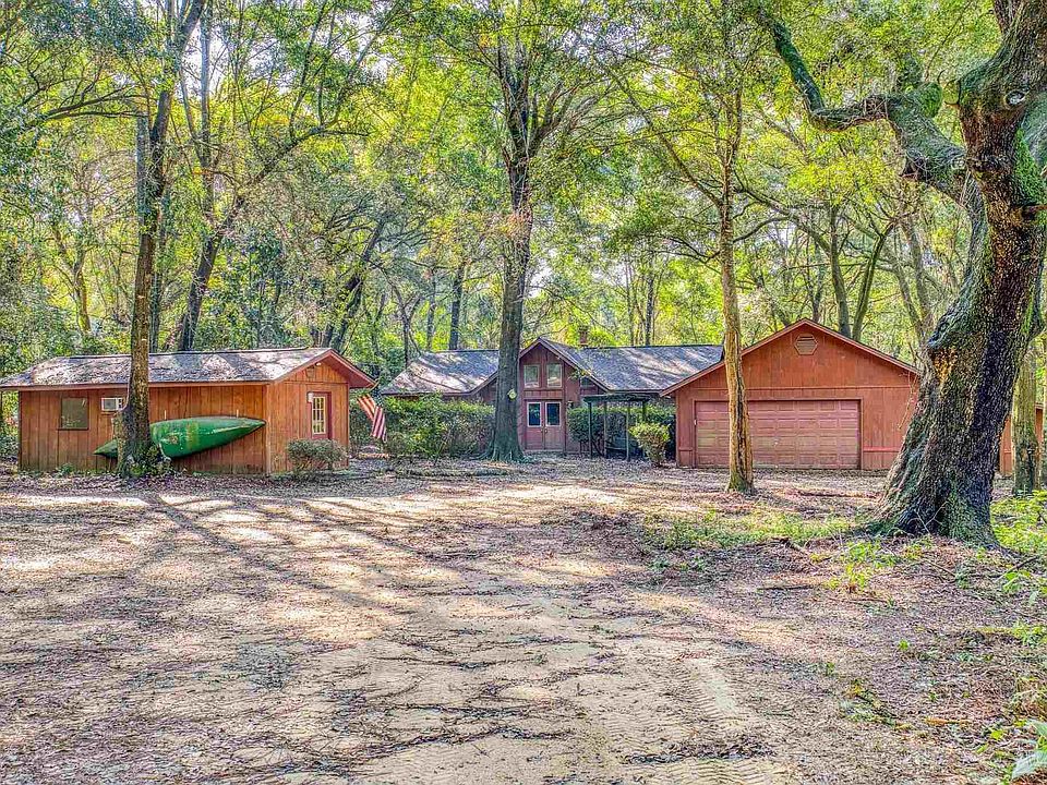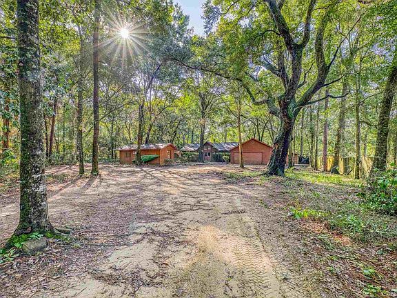 This 3 bedroom 2 bathroom home is nestled amidst a serene wooded area in the heart of Pace. The property itself includes 2 acres, a family home, a detached 288 sq ft bonus space that is finished out and has a wall unit AC, plus a 2 car garage with extra side storage. The wooded lot affords plenty of privacy and space and is zoned Rural Residential Agricultural (AG-RR) which allows for freedom to use the property for small-scale agricultural activities such as a plant nursery, raising animals or utilizing separate storage facilities for those agricultural needs. The property is just an 8 minute drive from Floridatown Park which offers access to the Escambia Bay where you can fish or boat, and only 5 minutes from coffee shops and restaurants along the main road of Hwy 90. The interior of the home has high ceilings in the main living area, a gorgeous brick fireplace that plays into the outdoorsy appeal of the home, and wood-look LVP floors throughout. The kitchen is situated to be adjacent the main living area and has a granite breakfast bar that connects the two. There is also a separate entrance from the kitchen into the designated dining room making hosting a breeze. At the rear of the home, the enclosed porch has been fully renovated to be part of the home, which includes being on the same central air and heat, plus a wall of windows that lets in plenty of bright light. All three bedrooms are a generous size with ample closet space and large windows, and the master bedroom has a stylish ensuite with extra storage. This property is perfect for the family who wants to be close to modern amenities while dabbling in homesteading and taking on projects on their own property.